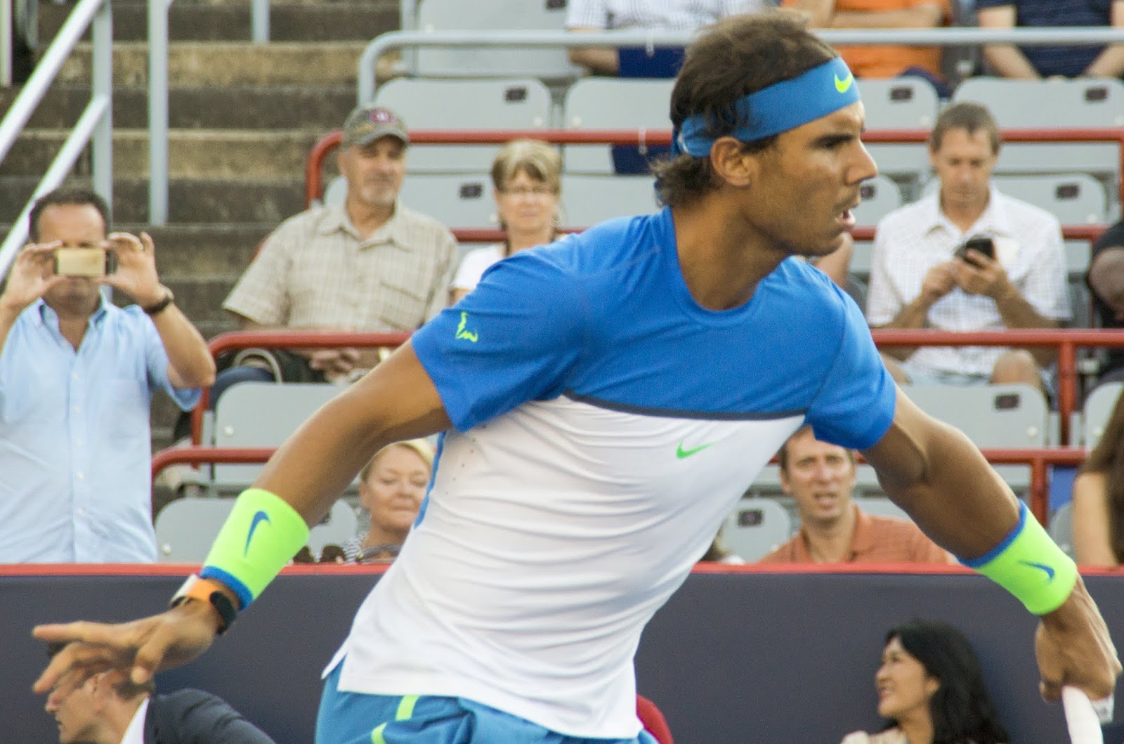 12 de Agosto del 2015, Montreal P.Q. Canadá; Cual es la diferencia del tenis moderno, al tenis clásico, al catalogar el mejor partido de ATP entre dos raquetistas importantes, uno Matador de Arsilla, Dice que heredó un olfato de Toro Miura, que ha conquistado mas trofeos que los antigüos navegantes Mallorquinos, Nadal es la manera de expresar furia, fuerza, y precision en cada movimiento.